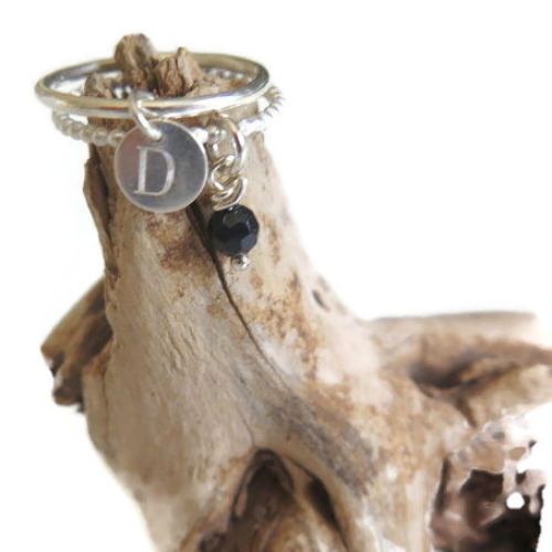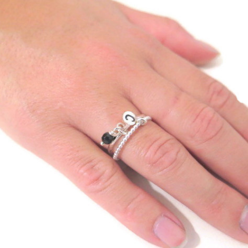 2 טבעות עדינות עם אבן ודיסקית חרוטה עם אות שלך או של חברה.