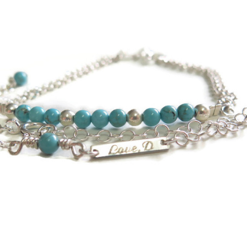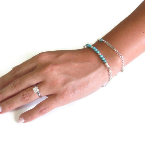 צמיד אחד עם אבני טורקיז וחרוזי כסף.