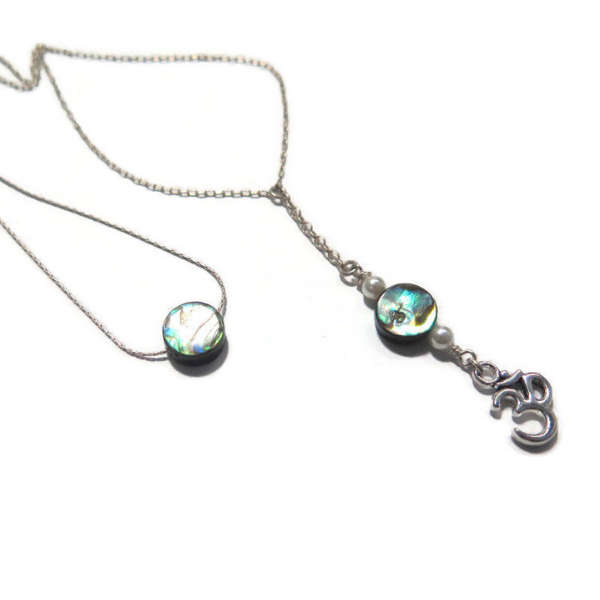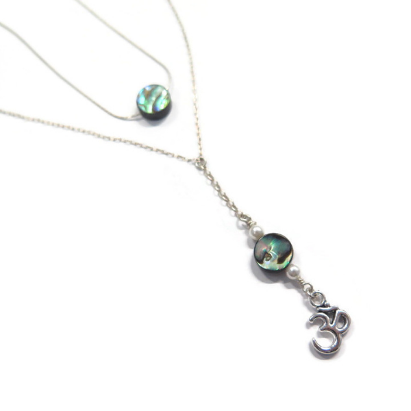 השרשרת השניה התלון יורד מהשרשרת עם פנינים קטנות אבלון ואום