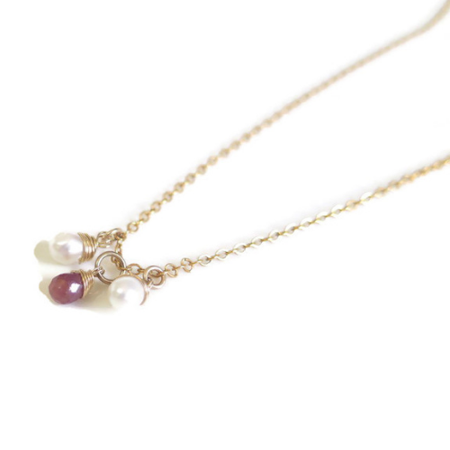 סט שרשראות מגולדפילד עם אבני רובי ופנינה דגם גפנן