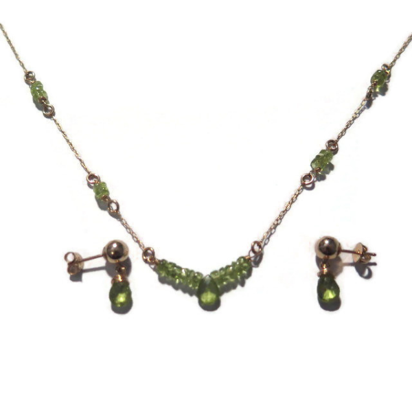 סט עדין ומיוחד, שרשרת עדינה עם אבני הפרידוט ועגילים עם טיפה של פרידוט, אשר תשלים את הטאץ.