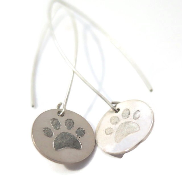 עגילי דיסקיות מכסף עם חריטה של כף רגל