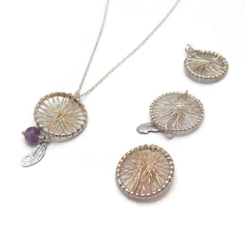 שרשרת תליון לוכד חלומות בשילוב חוטים דגם ויסטריה